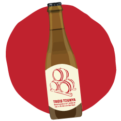 Bière blonde acide et légèrement amère issue d’une barrique ayant subit une « chauffe normande » à la framboise.